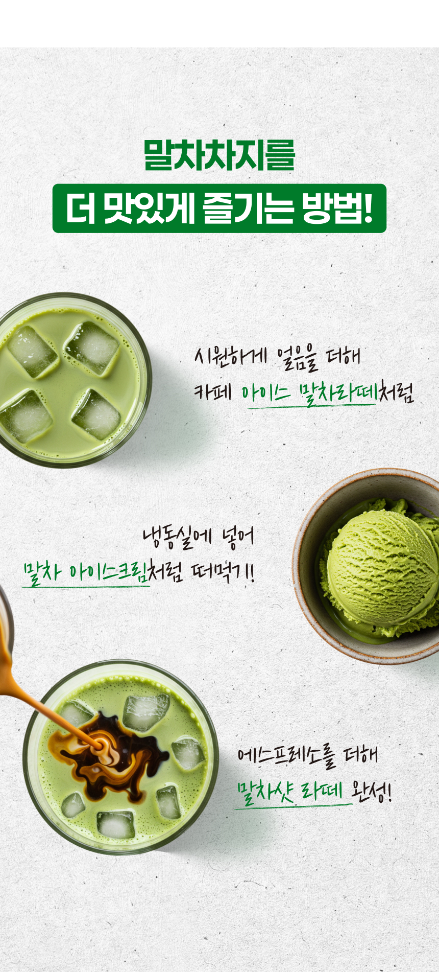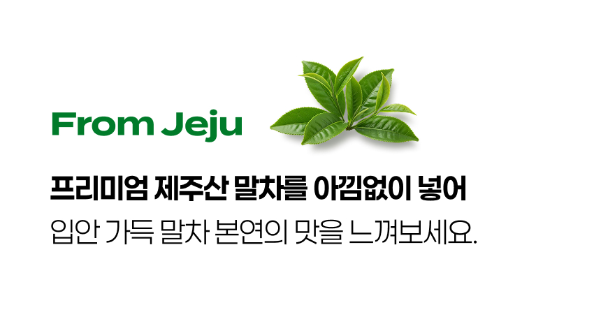 원재료명 및 함량 | 정제수, 원유(국산), 식물성크림[유청분말/미국산, 프랑스산, 체코산, 가공유지{야자경화유(야자유/인도네시아, 필리핀, 말레이시아)}], 혼합분유(네덜란드산), 에리스리톨(감미료), 알룰로오스, 말차분말(제주산), 향료, 카라기난, 밀크이엠디, 수크랄로스(감미료), 혼합제제(규소수지, 소르비탄지방산에스테르, 정제수, 카복시메틸셀룰로스나트륨, 글리세린지방산에스테르) | ||||